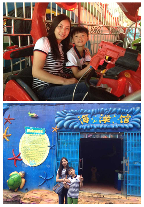 图:绍兴校园员工张素琴和儿子在绍兴儿童公园