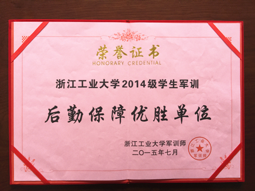此次军训后勤保障工作,在全体员工的通力合作下,以认真负责、细心周到的服务形象,务实、高效的工作作风,给承训教官和参训学生们留下了深刻的印象。同时,中心还被浙江工业大学军训师评为后勤保障优胜单位。(中心办公室供稿)
