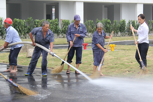 为营造良好的校园环境,物业管理部对迎新场地及新生开学典礼现场进行了布置,提前做好校内卫生保洁、绿化美化工作。摆放花卉两千多盆,土方平整补种草皮6000平米;迎新前打扫学生公寓寝室710间,摆放学生寝室内清卫用品550余套;为本科生迎新点摆放桌子100多张,椅子200多把;配合建设处,采取与施工单位交叉作业的方式,集中力量突击完成群贤楼的卫生清洁任务。迎新开始后,清卫员们更是从早6点到晚7点对迎新场地进行无间断保洁,为广大新生及家长提供了一个优美的校园环境。