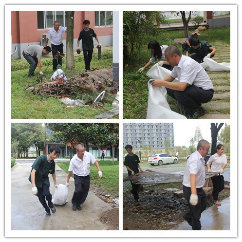 为增强党员先锋模范作用,提高后勤服务意识,进一步做好学校环境卫生治理工作,近日,中心绍兴校园党支部与物业服务部开展了“清洁环境、美化校园”义务劳动。