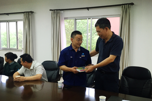图:中心党总支书记朱卫新代表工会向家中有留守儿童的职工赠书