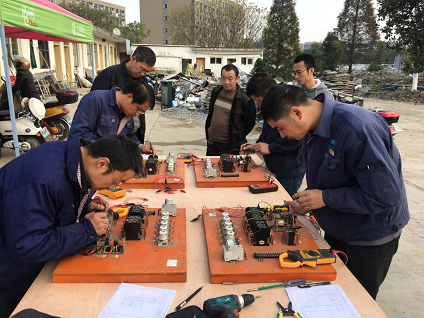 为提高维修人员专业技能,提升维修服务品质,响应中心开展的优质服务月活动,近日,水电修建部的维修师傅在水电办公室小广场如火如荼地进行一场技能比武。比武主要内容为比试维修电工操作技能和运行值班人员的操作技能,水电修建部的四名电工和三名运行值班人员参加了比武活动。