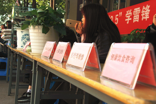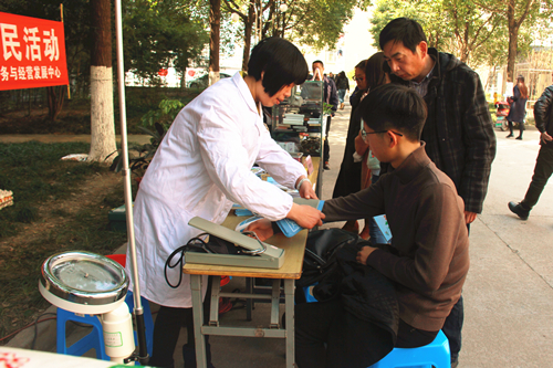图:学雷锋现场——医务室为师生提供血压检测服务
