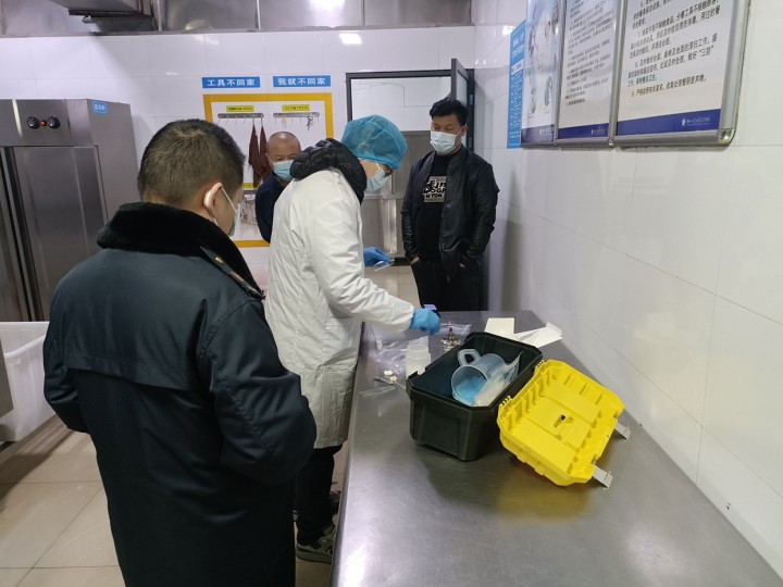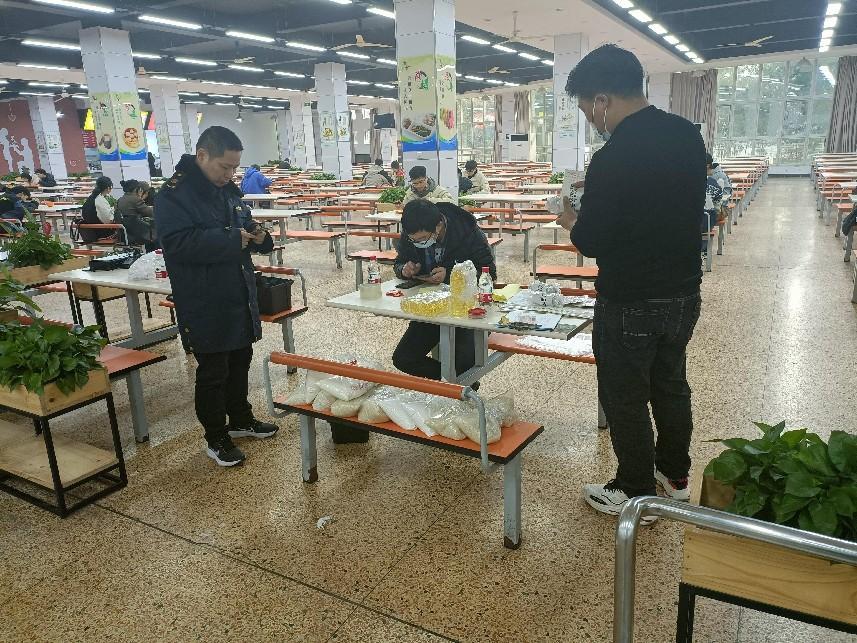 市场管理监督局人员逐一检查了洗碗间、粗加工间、主副食仓库、备餐间等场所,对现场操作进行询问并提出自己的专业建议。对日常使用的大米、面粉、食用油等原材料进行样品采集,封存后提交至专业技术部门进行食品安全检测。余伟峰所长表示,食品安全一直是高校餐饮的重点,日常的操作规范必须注重,日常的检查及操作必须做到位,防患于未然。分管领导楼建明表示认同并对食堂饮食安全管理中的细节问题进一步做出了强调,确保严防死守食品安全每一道风险关口。